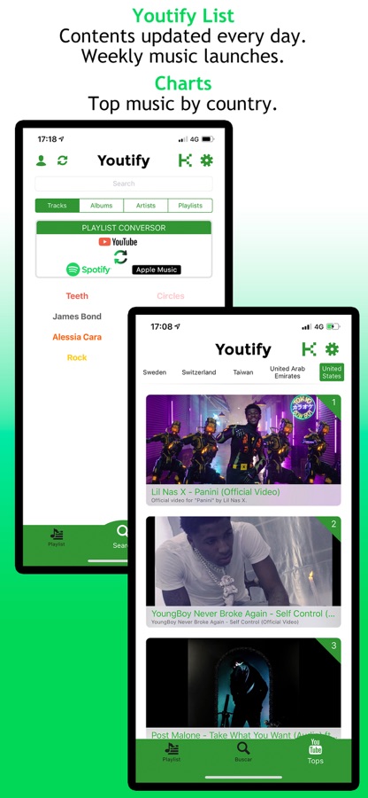 With Youtify you can find all the music you want. You can search by Playlists, Songs, Albums or Artists, and enjoy all the music through Spotify, Apple Music, Amazon Music or Youtube.