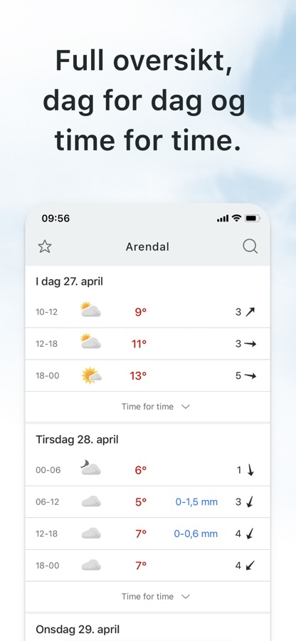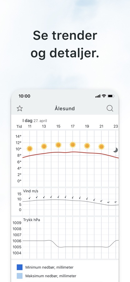 Sjekk detaljer dag for dag og time for time i langtidsvarslet, eller studer detaljene i grafen.
