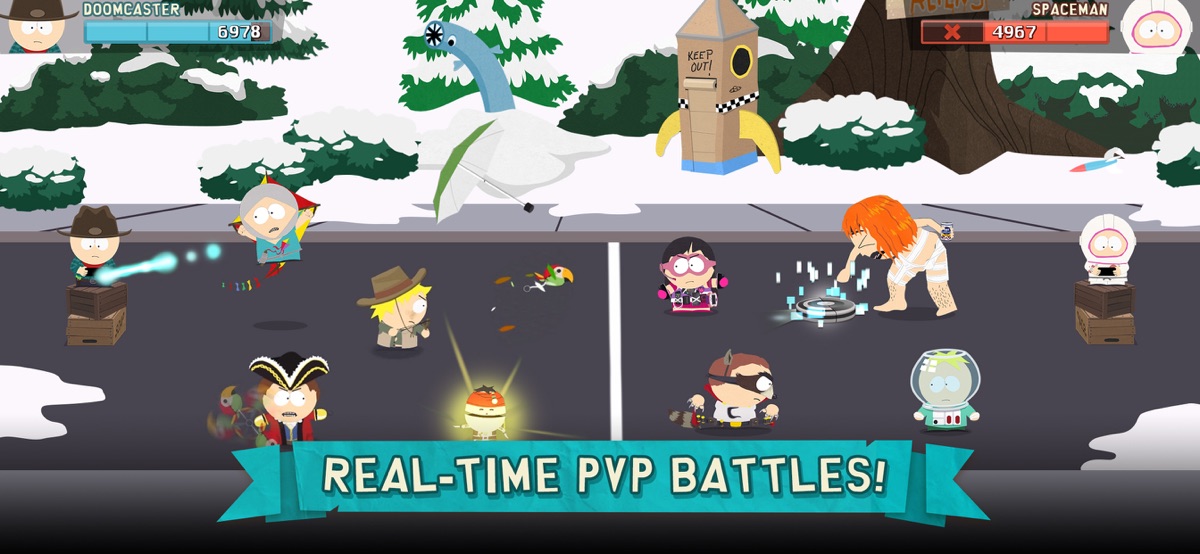 Встречайте стратегию в режиме реального времени с динамичными битвами от South Park Digital Studios! Ничего подобного вы еще не видели! Картман, Кенни, Стэн и Кайл в настоящем мобильном беспределе!