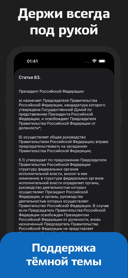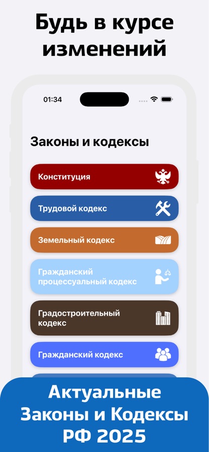 Приложение предоставляет полный доступ к актуальным статьям Законов и Кодексов Российской Федерации за 2026 год.