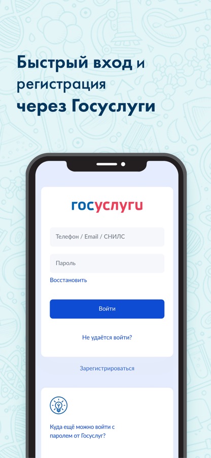 — не нужно вводить данные пациента. Вход в приложение осуществляется через Госуслуги — все сведения автоматически подтягиваются,