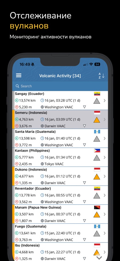 — Отслеживайте обновления о вулканических извержениях в реальном времени.