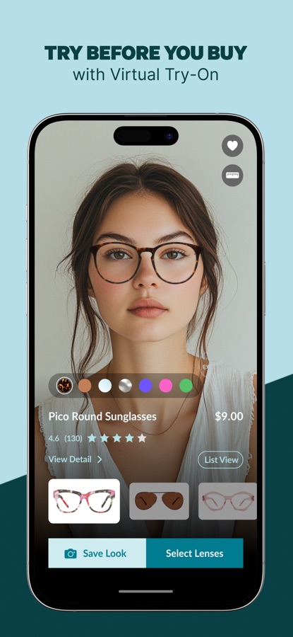 Our app offers you the widest selection of affordable, high-quality prescription glasses at your fingertips. Explore thousands of styles starting at just $6.95, including basic prescription lenses. Finding the perfect prescription glasses or sunglasses has never been easier — or more fun! Found a glasses style that you like? Find a similar pair with our AI-Powered Image Search Tool. Take a pic or upload a photo and find the Zenni frame that matches the style. Use our enhanced 3D Virtual Try-On to see how they look on you before you buy. You can also shop for eyewear accessories and specialty lenses such as Transitions®, progressives, bifocals, Blokz® blue-light-blocking, and more.