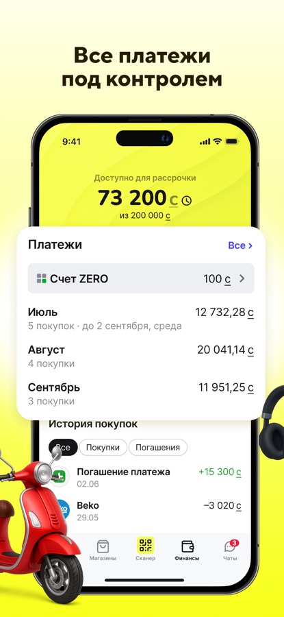 Всю информацию о покупках и платежах по рассрочкам вы можете увидеть в мобильном приложении. Контролируйте когда и за что вам нужно платить, с ZERO это очень просто.