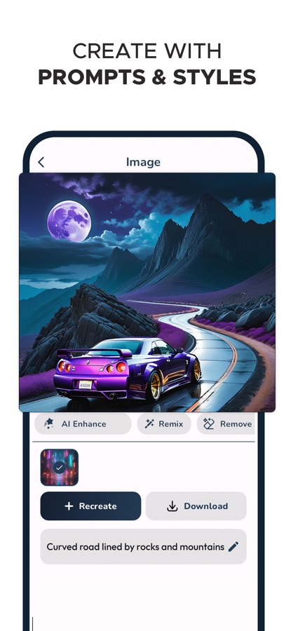 Turn Photos into Art: Transform ordinary photos into extraordinary artworks. Choose from a vast selection of AI art styles and add a touch of creativity to your photos with just a few taps.