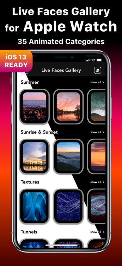 Погрузитесь в эксклюзивную анимированную галерею живых циферблатов, отсортированную по 35 различным категориям, таким как: Космос, Лето, Музыка и т. д.