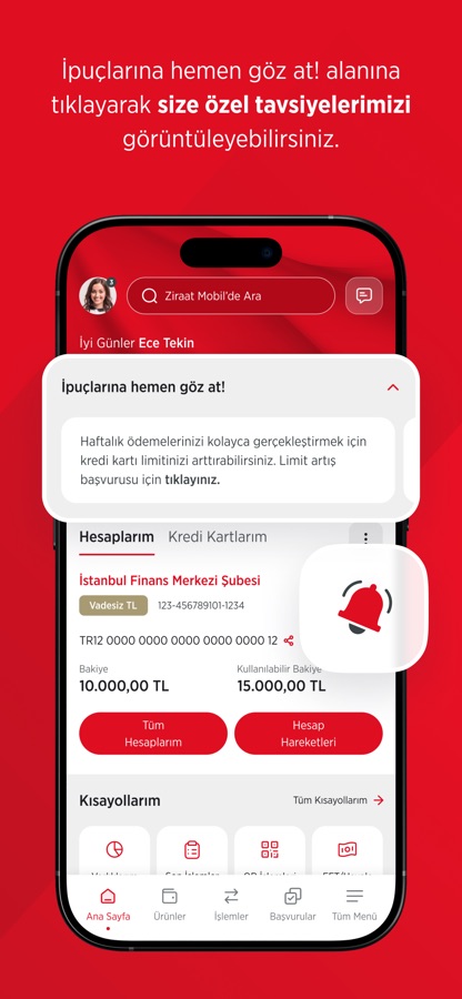 • Bildirim altyapısı ile bilgilendirme tercihi ayarlarınızı güncelleyerek hesabınıza para giriş ve çıkışlarında anlık bildirim alabilirsiniz.