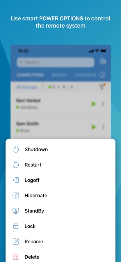 Siri shortcuts: Start sessions, search for and connect to distant machines, and more using voice commands.
