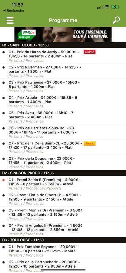 — Programmes des courses PMU d’hier, d’aujourd’hui et de demain