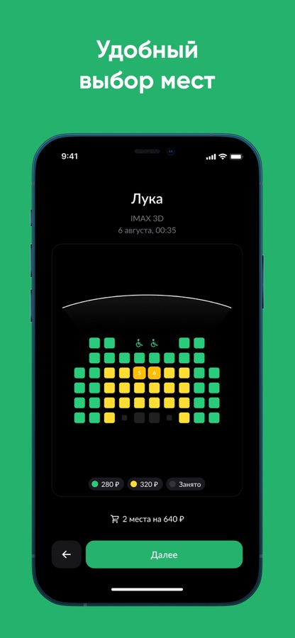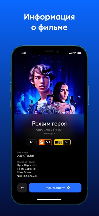 Выбери удобный сеанс и кинозал, купи билет в один клик, участвуй в бонусной программе и наслаждайся просмотром интересного кино.