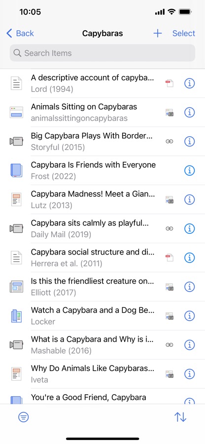 • Save journal articles, newspaper articles, books, webpages, and more via the Share button in Safari and other apps