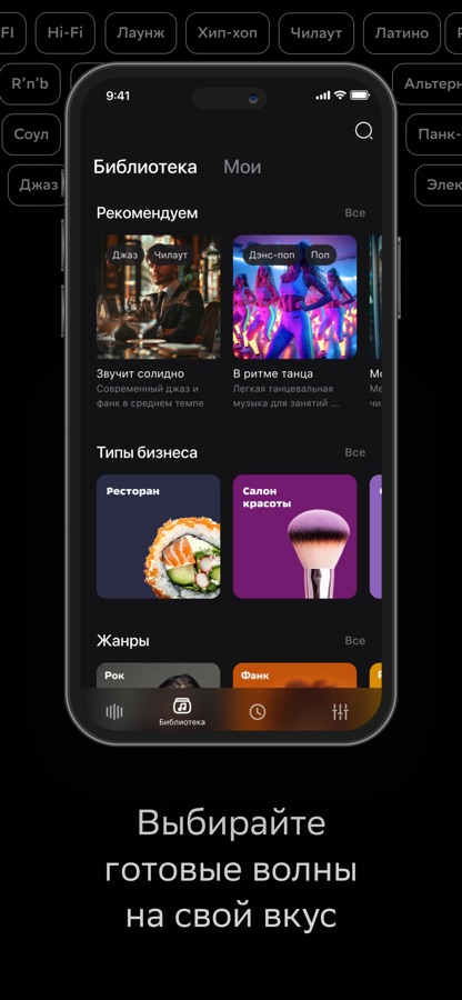 • 1 млн треков для создания уникальной атмосферы в любом помещении.