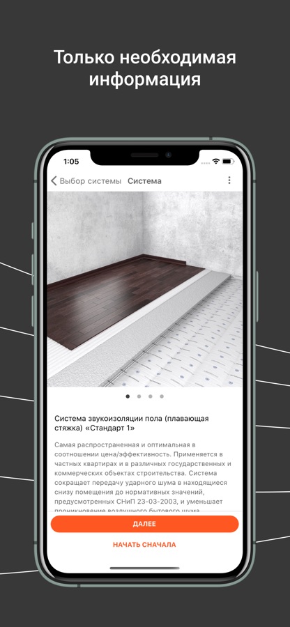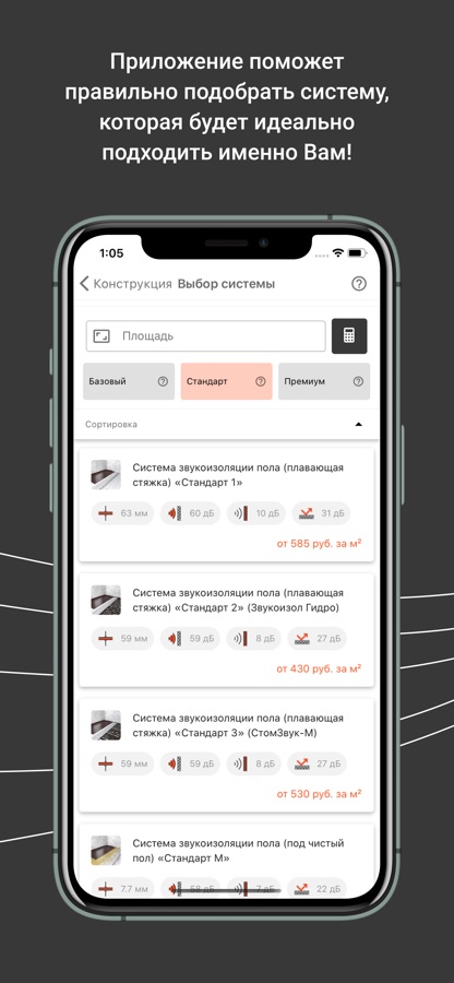 Ваш пол на этапе заливки или вы ищите звукоизоляцию под ламинат? Вам необходимо возвести качественные межкомнатные перегородки или шумоизолировать стену? Приложение поможет правильно подобрать систему, которая будет идеально подходить именно Вам!